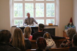 Die diesjährige Veranstaltung hat der Autor Tomte King überschrieben mit "Die Kriegerin des Teufels" - aber Angst haben braucht trotzdem niemand: Der Autor wird in gewohnter Weise Kostproben seiner liebevoll-empathischen Erzählweise aus der vielschichtigen Geschichte um die anfangs 14jährige Hauptfigur Ronja geben, welche kindgerecht ausgewählt sind und das Interesse am Lesen wecken sollen, ohne zu viel zu verraten. Die Lesung richtet sich an Jugendliche und Erwachsene, kann so aber auch von Kindern ab 8 Jahren besucht werden. Dabei erfolgt die Auswahl der Erzählungen so, dass keine Vorkenntnisse zu den Büchern oder früheren Lesungen notwendig sind, sondern auch "Neueinsteiger" herzlich willkommen.