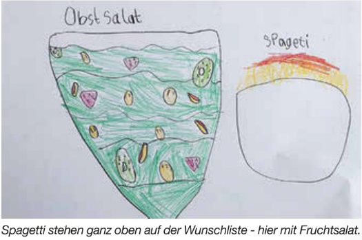 Der studierte Lebensmitteltechniker, der früher in Restaurants gearbeitet hat, spricht gerne mit den Kindern über die verwendeten Lebensmittel und kocht auch einmal pro Woche eine Lieblingsspeise. „Ich bitte die Kinder dann, das Wunschgericht zu malen, und nehme es in den Speisenplan auf." Gekocht wird saisonal, im Wechsel mit Fleisch, Fisch oder vegetarisch. Die Zutaten kommen überwiegend von regionalen Anbietern.