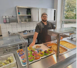 Am Herd steht Sven Böll. Der gelernte Koch bereitet mit seinem Team täglich bis zu 50 Mahlzeiten zu. „Es macht Spaß, für die Kinder zu kochen. Sie geben sehr viel zurück: Sie freuen sich, wenn etwas besonders gut schmeckt und probieren auch Speisen, die sie von zu Hause vielleicht nicht kennen*, erzählt Böll.